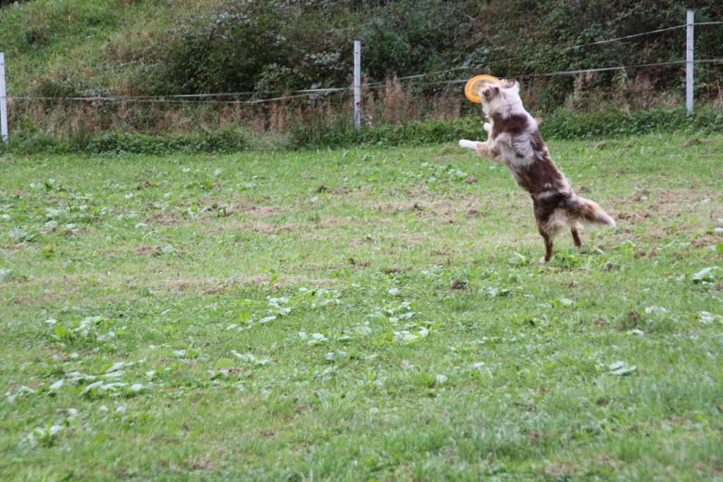 Du sendest "komm" - verstärkst es bei Ankunft mit "feeeeein" - gibt's ihm ein "Leckerchen" - und er sitzt vor Dir.